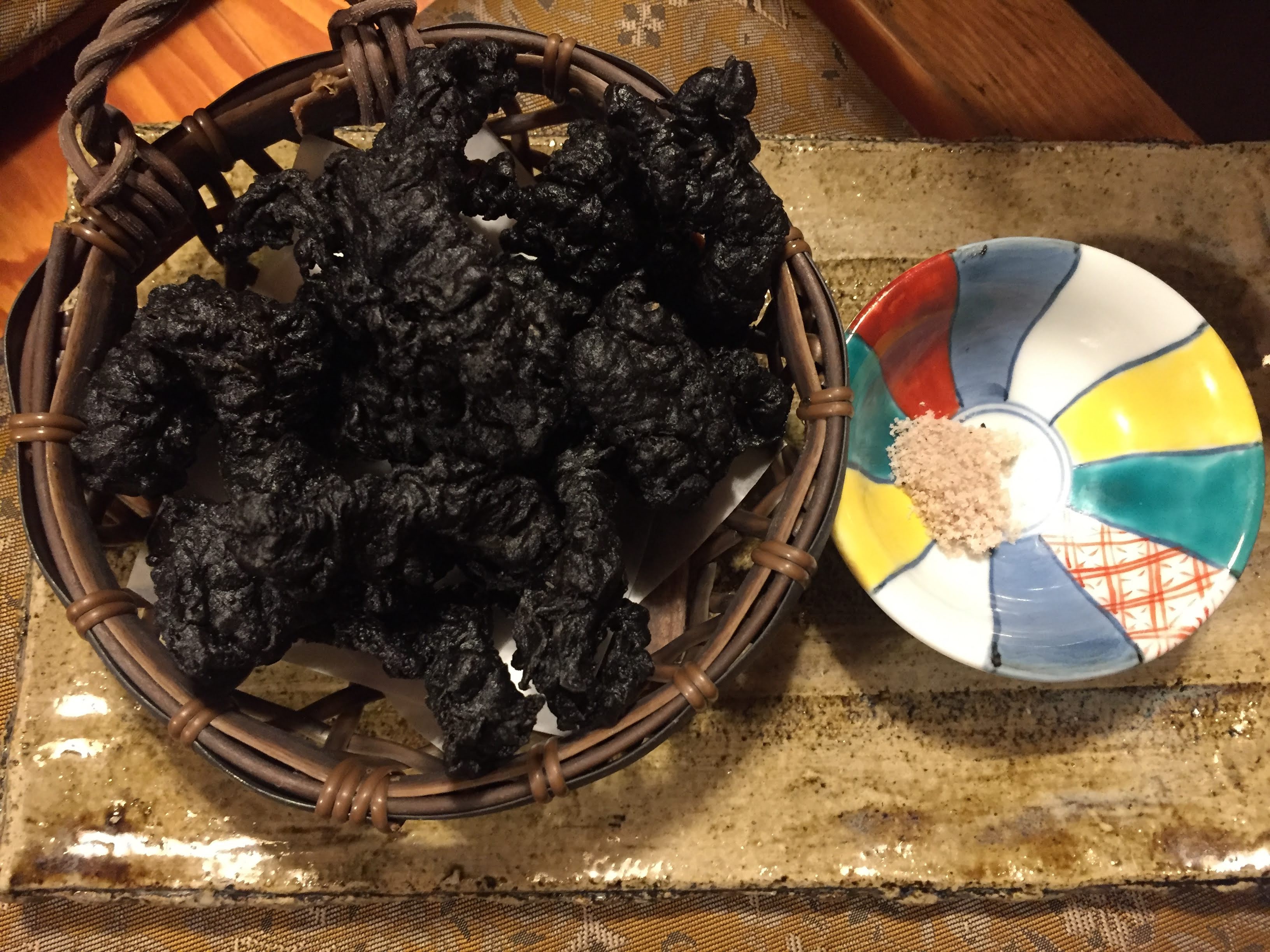 イカの天ぷら(イカ墨の衣をまとって)
