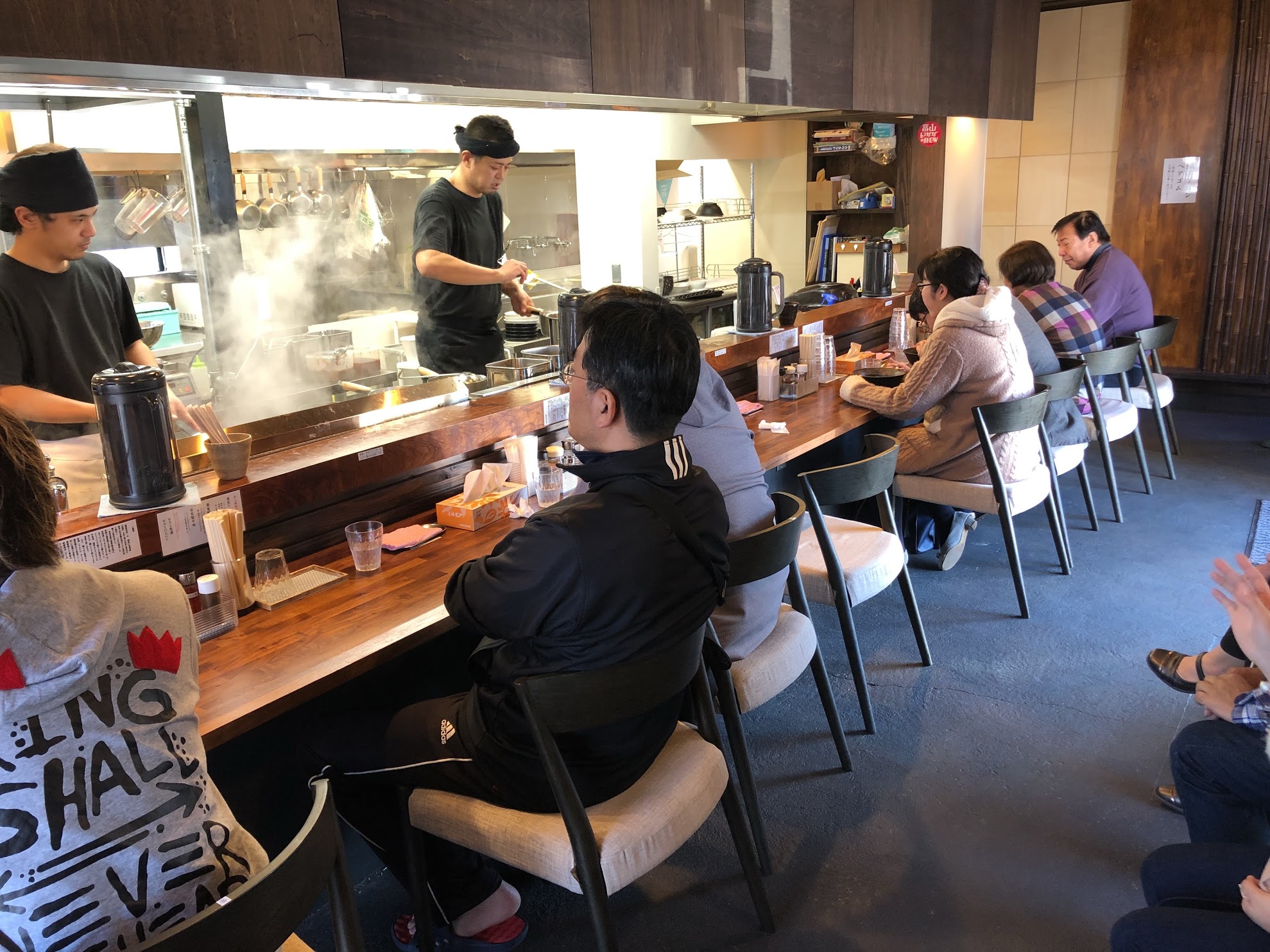 鶏白湯ラーメンのお店がここだけだからなのか、日曜日のお昼時だからなのか分かりませんが席は満席でお客さんも数名並んでいました。
